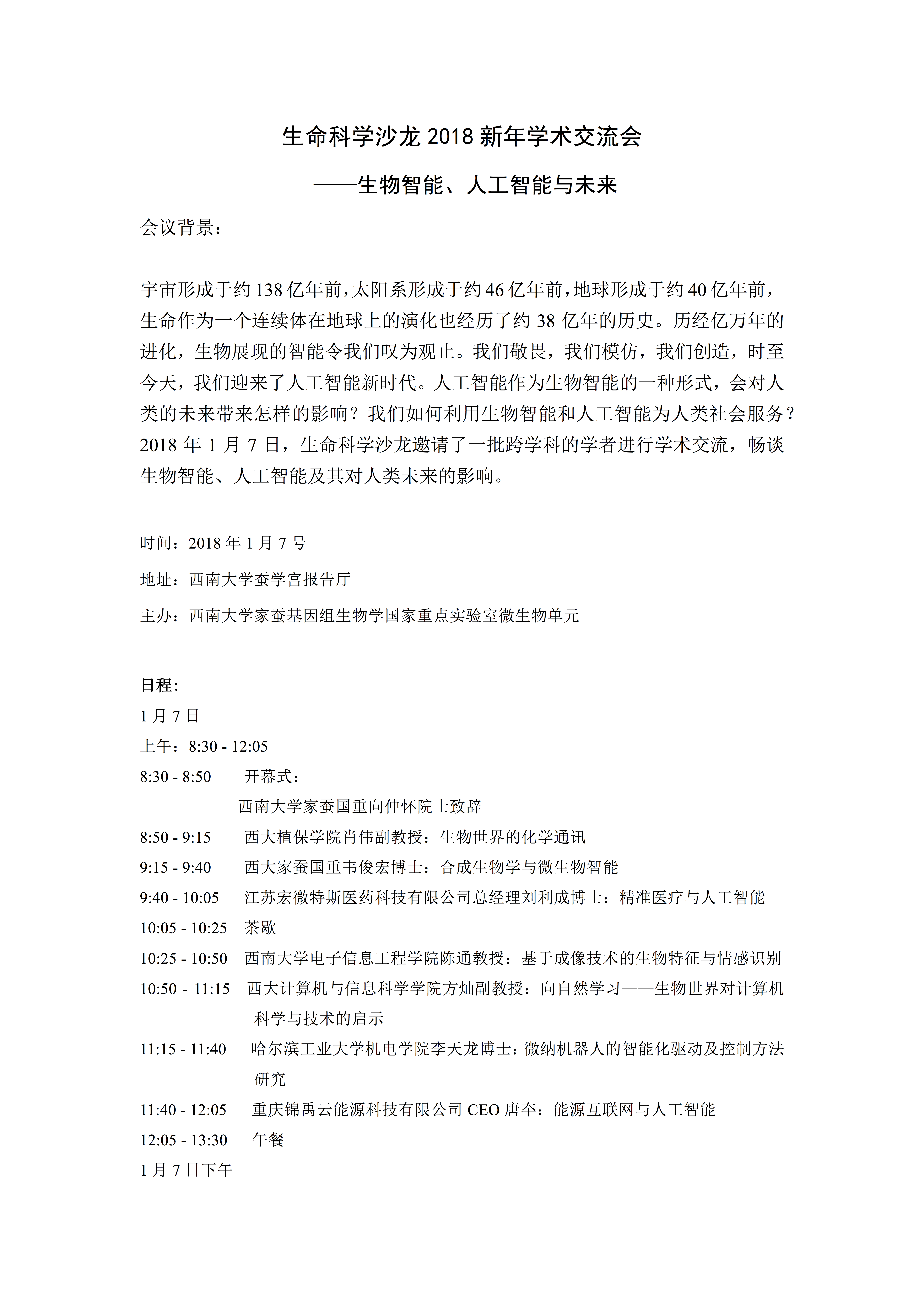 生命科学沙龙2018新年学术交流会