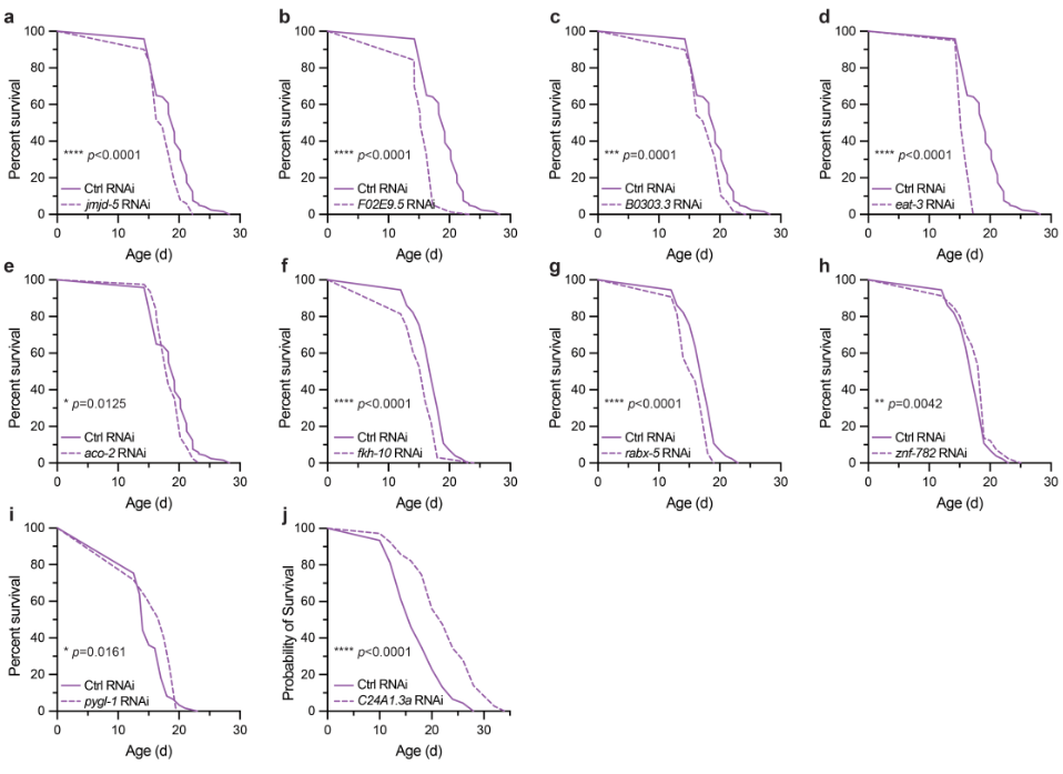 图2. FoxO转录结合靶标影响寿命的效应调查
