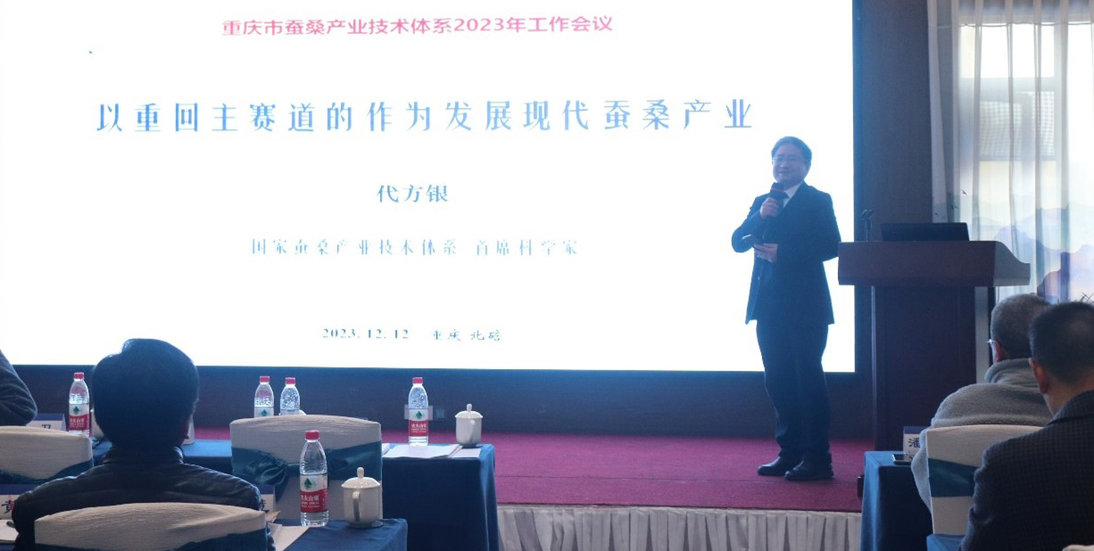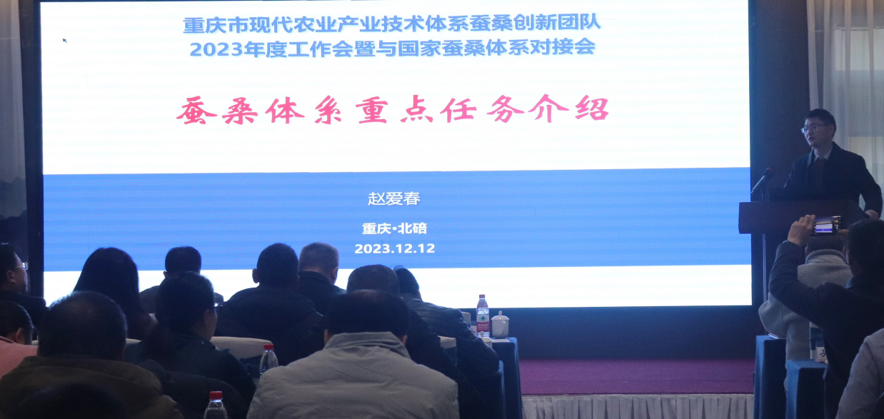 于12月11-13日在重庆北碚召开了重庆蚕桑产业技术体系2023年度工作会暨与国家蚕桑产业技术体系对接会。会议举行了开幕式、市体系任务介绍与工作进展汇报、专题报告、对接交流、参观考察等活动。重庆市农业农村委员会、重庆市商务委员会及西南大学有关部门负责人,国家蚕桑产业技术体系首任首席科学家向仲怀院士、现任首席科学家代方银教授以及在渝在聘岗位科学家,重庆市蚕桑产业技术体系各功能室、试验站负责人及技术骨干,重庆市蚕业总站、市蚕桑主产区县蚕业主管部门以及企业代表,共计70余人参会。