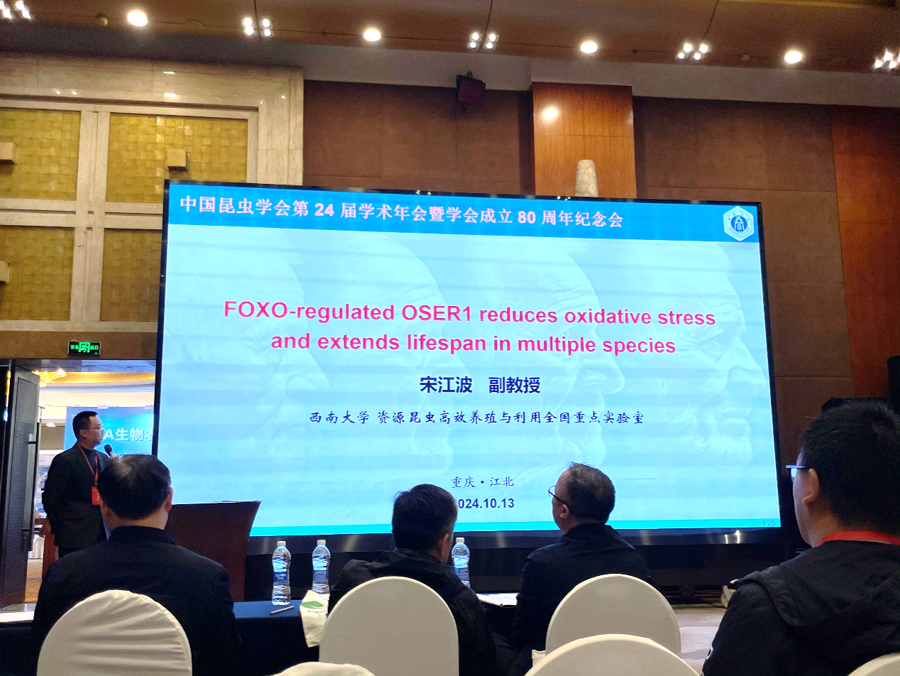 2024年10月11日至14日,由中国昆虫学会主办,重庆市昆虫学会承办的 “中国昆虫学会第24届学术年会暨学会成立80周年纪念会”在重庆召开。大会开幕式由中国昆虫学会副理事长兼秘书长乔格侠研究员主持,中国昆虫学会理事长戈峰研究员、中国科协科技创新部副部长杨书宣、重庆市科协党组成员/副主席戈帆、重庆市昆虫学会理事长陈斌教授等嘉宾出席并致辞。康乐院士、孙航院士、桂建芳院士及西南大学校长王进军教授等国内昆虫学领域的知名专家学者应邀做了大会报告。本次会议以“传承创新,开创昆虫学新纪元”为主题,围绕不同研究方向设立了7个学科组,并通过特邀报告与申请报告的形式组织了178个分组报告。大会还安排了大量墙报展示,全面呈现昆虫学领域的研究成果、企业服务及其产品。来自全国各地(省、市、自治区)的1200多名会员积极参与了此次盛会。