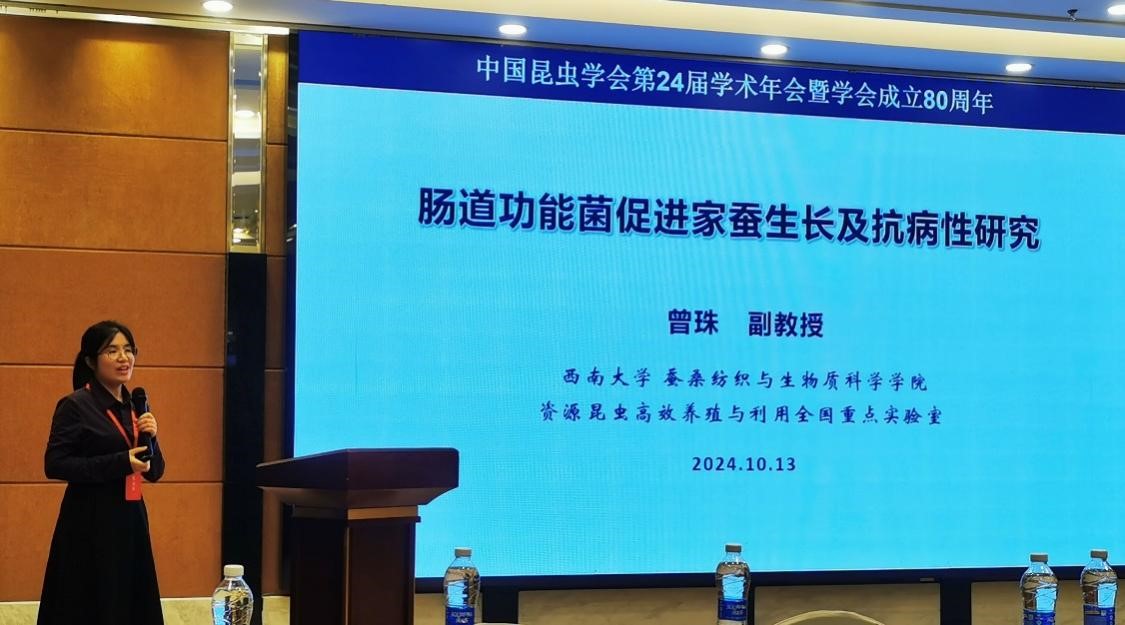 人员在大会中表现积极,作了多个分会报告和墙报展示。宋江波副教授作了题为“FOXO-regulated OSER1 reduces oxidative stress and extends lifespan in multiple species”的报告;龙定沛副教授作了题为“极早期电晕处理介导的蚕卵人工孵化及滞育家蚕品系遗传转化研究”的报告;曾珠副教授作了题为“肠道功能菌促进家蚕生长及抗病性研究”的报告;陆昆鹏老师作了题为“家蚕泛基因组和多组学数据库及其应用”的报告。此外,吴松原老师和鹿亚如博士后分别展示了题为“The BTB-ZF gene Bm-mamo regulates pigmentation in silkworm caterpillars”和“Deciphering the genetic basis of silkworm cocoon colors provides new insights into biological coloration and phenotypic diversification”的墙报。这些报告和墙报展示了人人体育下载