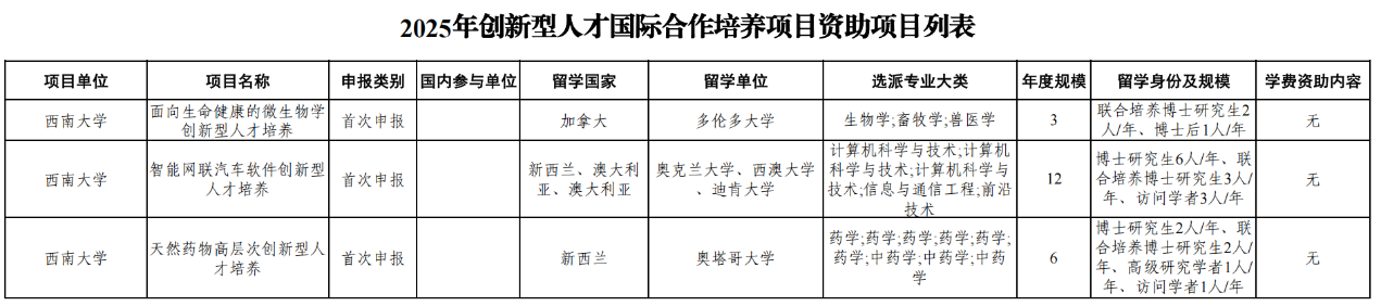 近日,国家留学基金管理委员会公布了2025年创新型人才国际合作培养项目获批名单,人人体育app
