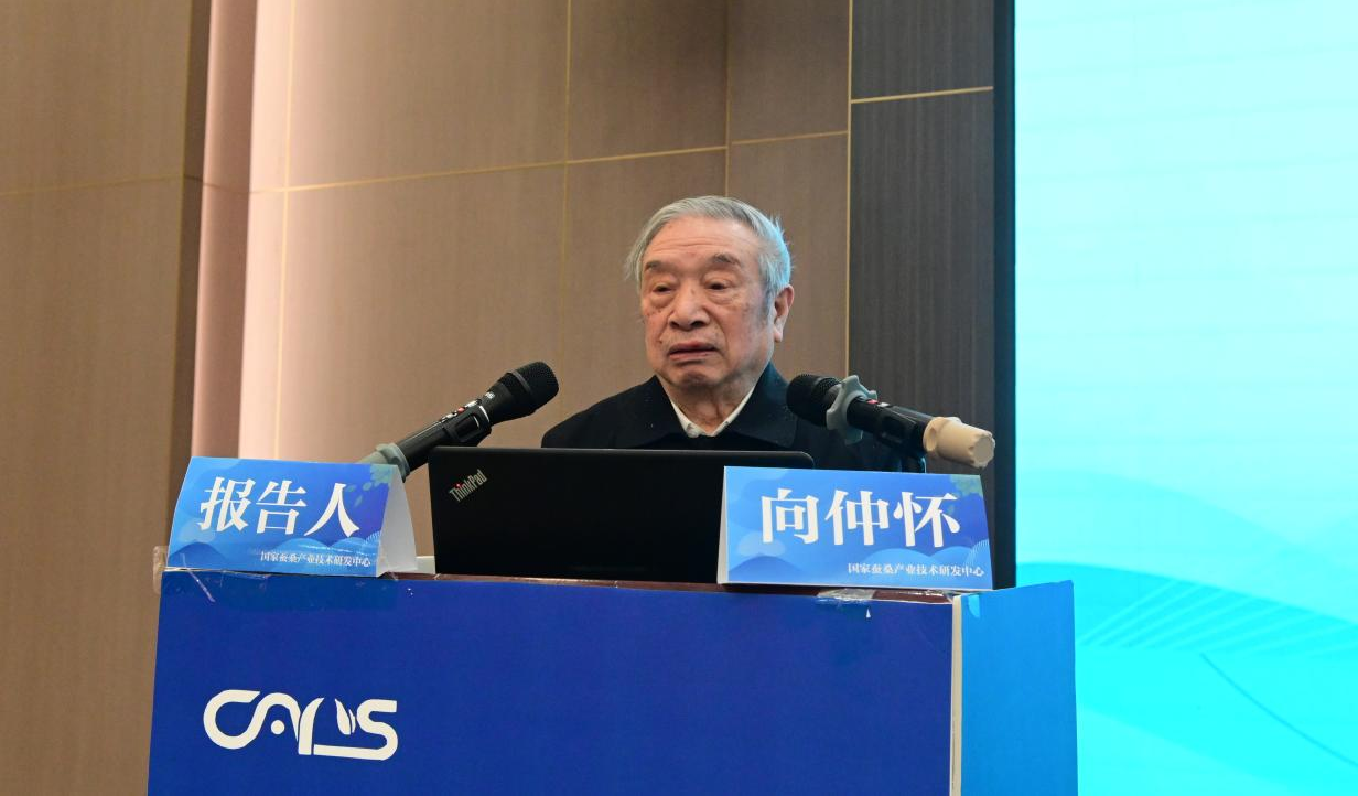 最后,由向仲怀院士作指导发言。向仲怀院士首先向大家表达了问候,总体上肯定了体系为蚕桑产业发展作出的努力和取得的成绩。随即,他围绕“推动蚕桑产业重回主赛道”,展开了系统性阐述。向院士强调科技突破对于产业发展的重要性,回顾了蚕、桑及重大病原基因组研究在关键时期对于提升科技水平、人才队伍和行业影响所发挥的作用,强调了桑树基因组研究的科学发现对于拓展产业方向的启示和影响。向院士强调,如何通过科技创新找到产业发展的新方向,始终是最要紧的任务。他指出,发展桑产业,推动生态治理和多元化发展意义重大,应耐心地在科技队伍和体系中实践探索;发展生态型产业,以服务大健康为方向,融入国家战略,实现多元化和高效益,提升产业竞争力。向院士指出,21世纪以来,蚕桑产业面临从传统模式向现代产业体系的转型,这一转型要求科技发展与产业需求相匹配,切实解决科技跟上需求的问题。产业的转型需要高层次科学家和产业专家的共同努力,通过科技创新来发现蚕桑产业的新功能、开发新产品,进而开拓新市场。此过程不仅涉及到种植业的转型升级,也强调了养殖业现代化生产的重要性,并要在产业中发现和利用新的价值。向院士指出,转型成功的关键在于识别和培育新的市场,同时利用现代科技解决传统产业中的难题。例如,通过开发蚕丝新材料等,以促进蚕桑产业的全面发展和市场拓展。最后,向院士进一步强调了现代蚕桑产业的发展路径问题。他指出,“立桑为业、多元发展”,就是立于生态、立足农业、因地制宜、多元模式、现代化发展,通过科技创新和学科交叉合作来推动产业进步,不断蹚出新的路子。