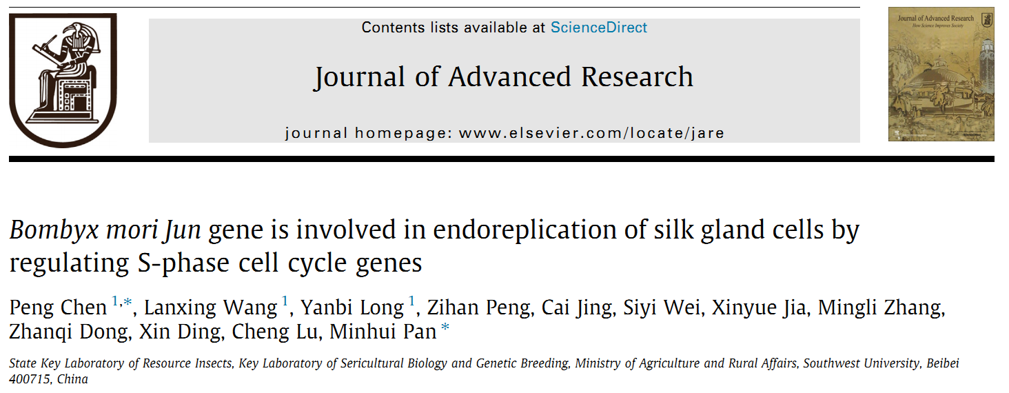 2025718日,国际著名期刊Journal of Advanced Research中科院1TOP期刊IF2024=13.0在线发表了西南大学人人体育app 潘敏慧教授课题组题为 Bombyx mori Jun gene is involved in endoreplication of silk gland cells by regulating S-phase cell cycle genes的研究论文。该研究首次解析了JNK信号通路及下游关键基因BmJun在家蚕丝腺细胞核内复制中的功能和作用机制,并基于CRISPR/Cas9技术成功创制了丝腺特异性敲除BmJun基因的转基因品系,为家蚕丝腺改良与新品种的培育提供了重要素材。