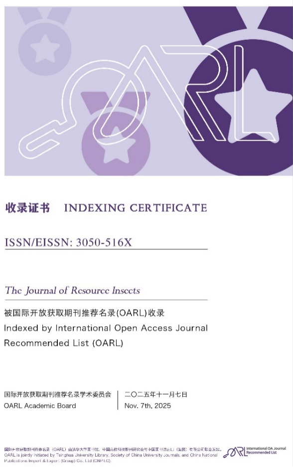 OARL数据库是目前国内三大OA期刊数据库(ORAL、COAJ和OAJ)之一,由中国图书进出口(集团)总公司、清华大学图书馆及中国高校科技期刊研究会共同发起的权威开放获取期刊推荐平台,旨在为全球科研人员遴选和推荐高质量、可信赖的开放获取期刊,是国内科研和教育领域非常有影响力的资源指南。OARL的收录是对杂志办刊宗旨、学术水平和出版质量的高度肯定,标志着Journal of Resource Insects的发展迈上一个新台阶。